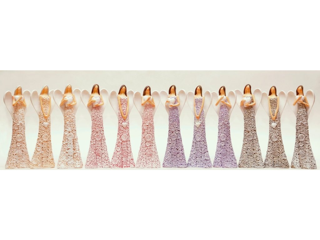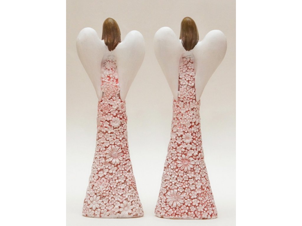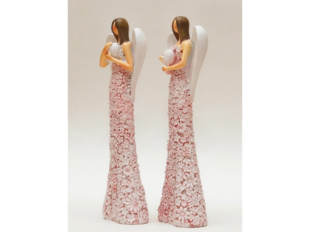 Anděl růžové barvy, držící srdce na hrudi (1 kus). Výška Anděla je 15 cm.